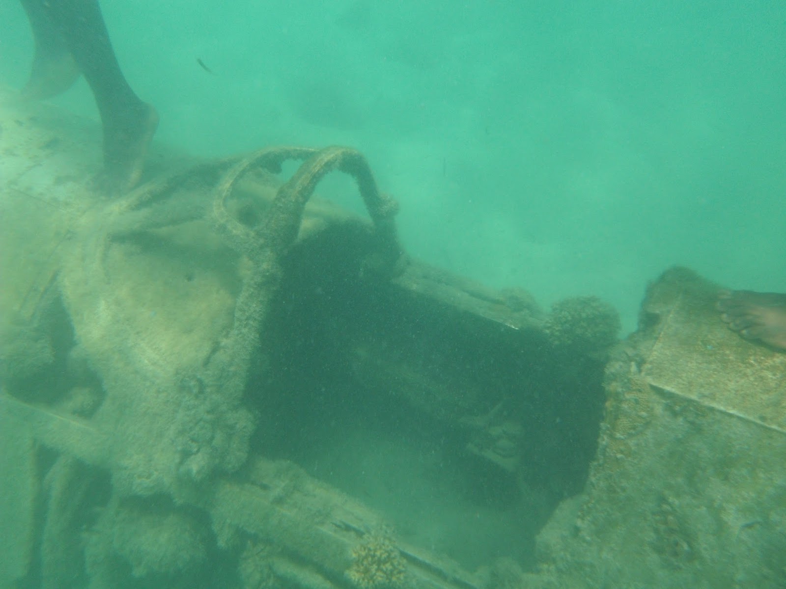 We stopped at a tiny World War II museum with articles and artifacts, and then asked the woman manning the museum how to find the plane. The man who knew where it was had gone to town, she said. They had attached a buoy to it at one point, but someone had stolen the buoy - so we'd have to go look around ourselves. She did lend us two teenage girls who sort of had an idea of where to find it, but we were driving back and forth for a while, scanning the clear blue water for anything that looked like a plane on the bottom. At one point, as you do when you are lost, we "Pulled over and asked for directions." In our case, this meant asking a passing snorkeler - in Vanuatu many people snorkel to spear fish. He gave us rough directions - but how do you give clear directions about how to find something underwater?